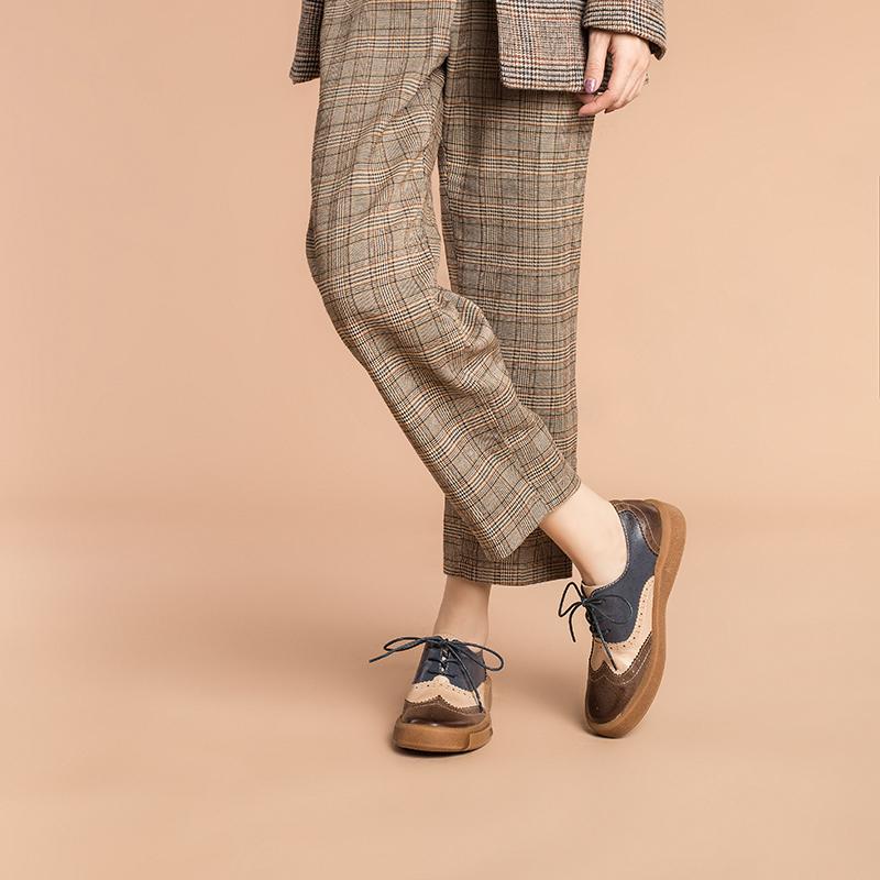 Womens Wingtip Shoes Handmade Sheepskin Full Brogues Oxfords & Tie Flats Muti Color
