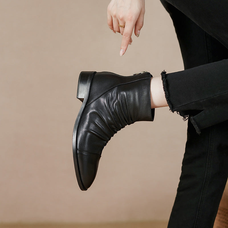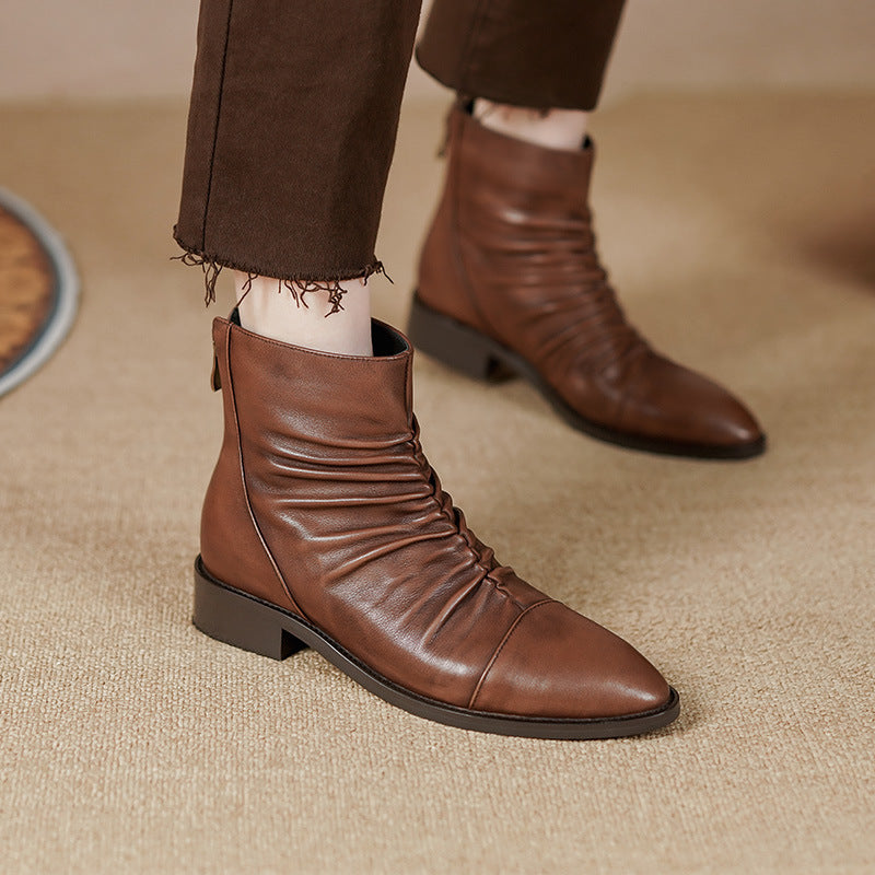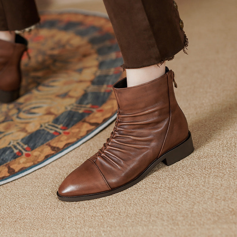 Classic Women's Leather Chelsea Boots Soft Fold Decorate and Back Zip in Black/Brown