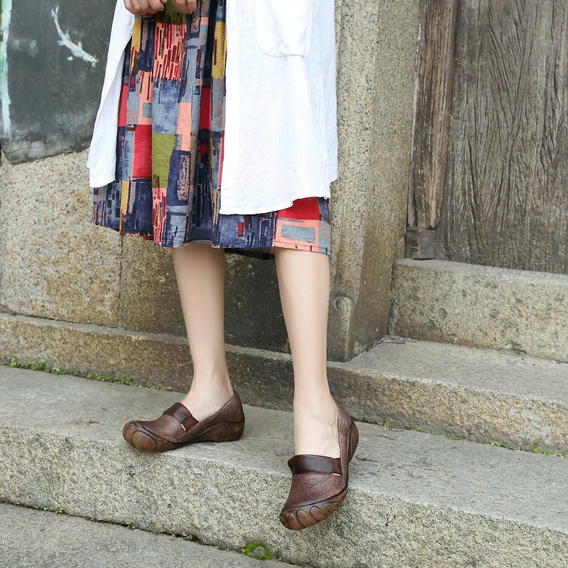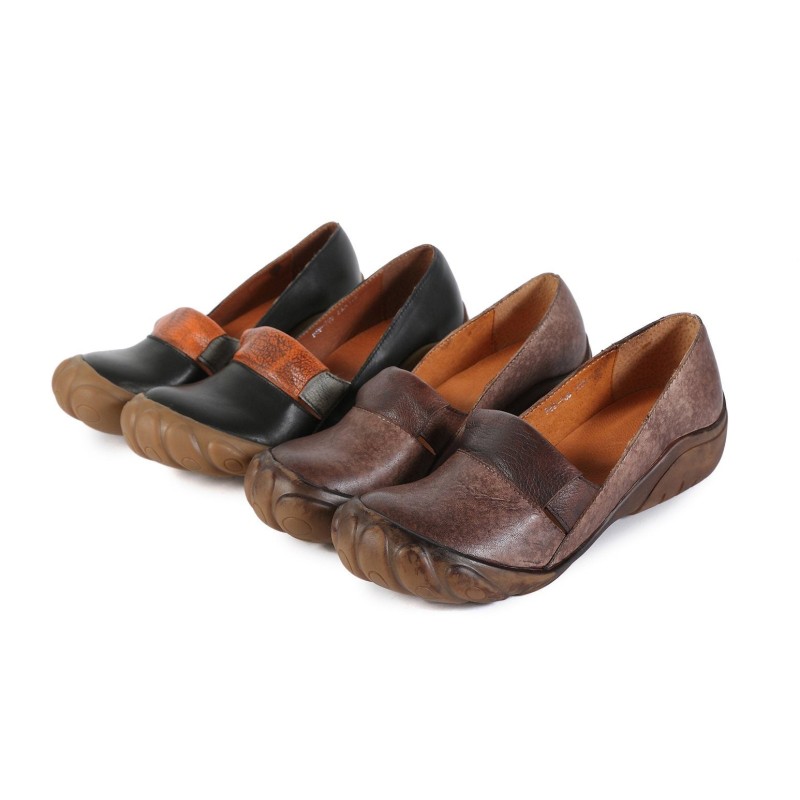 Designer Shoes Genuine Leather Loafers For Women Handmade Flats Coffee