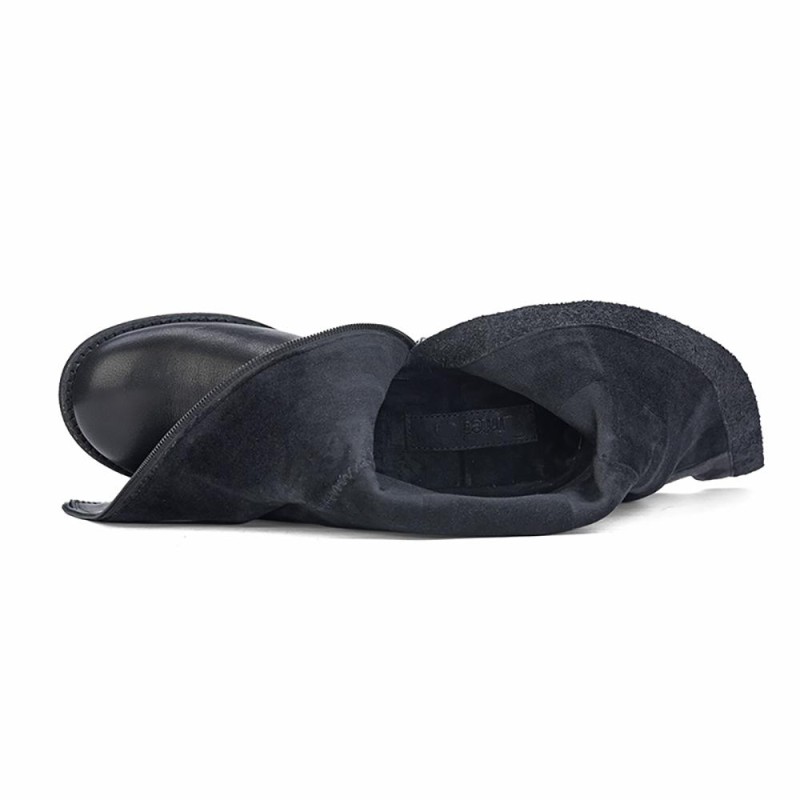 Wide Fit Handmade Soft Leather Knee High Boots Side Zip Riding Boots Black Short Plush