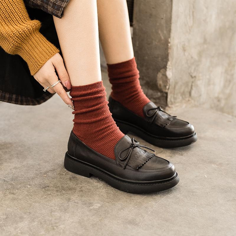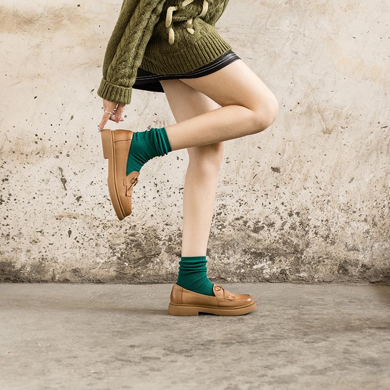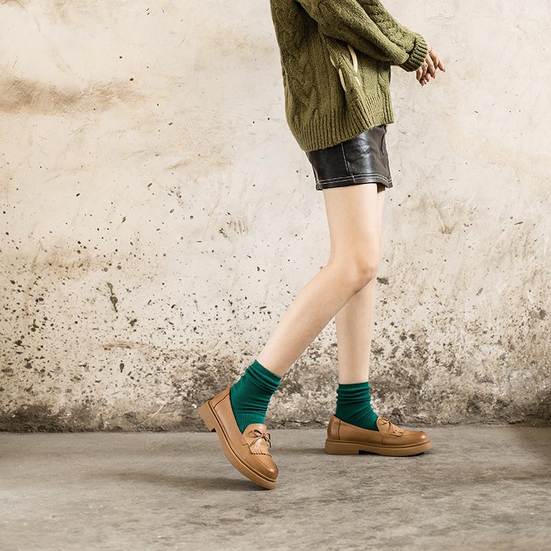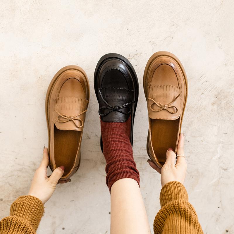 Womens Handmade Sheepskin Brogue Loafers With Tassels Brown/Black