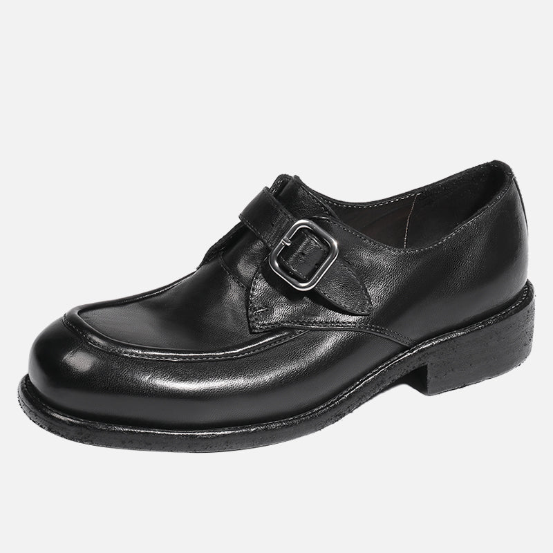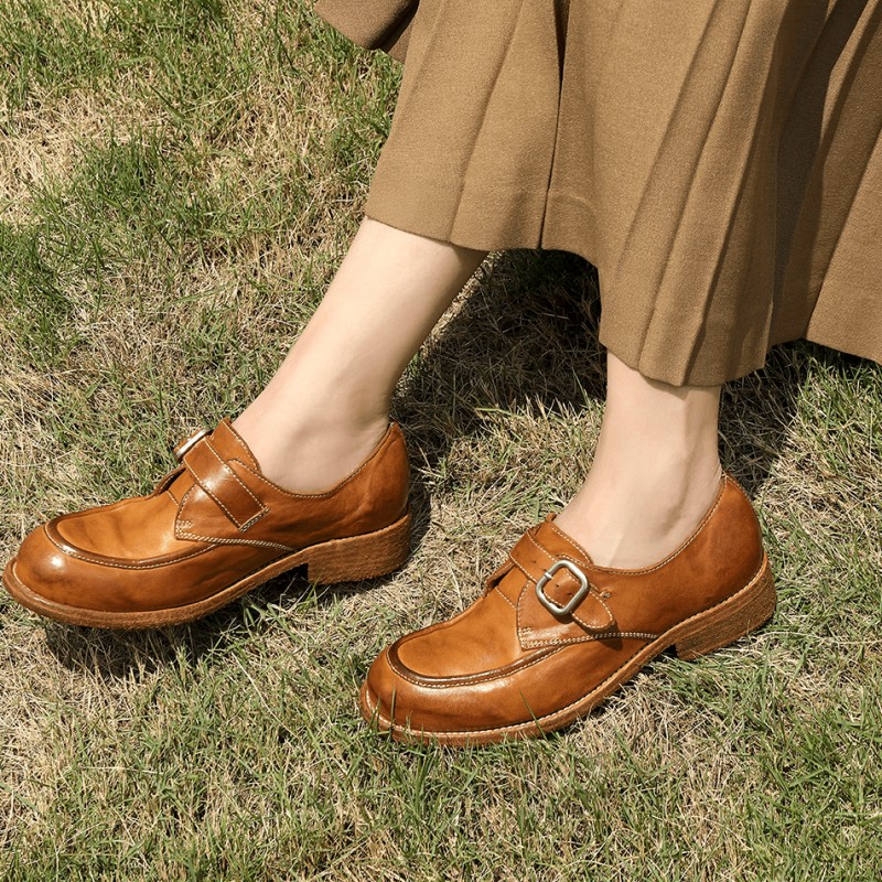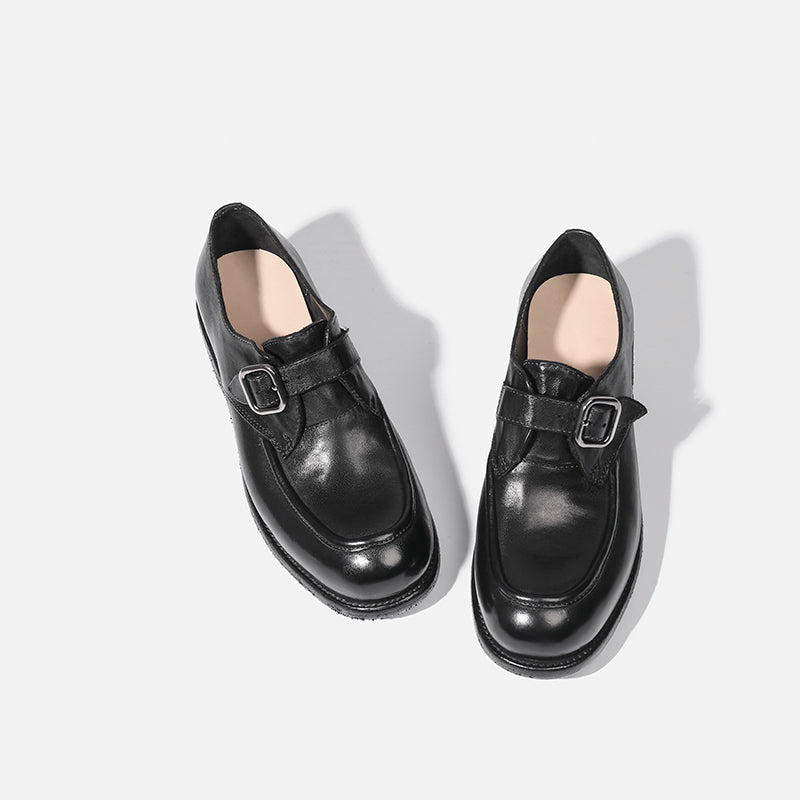 Goodyear Horse Leather Shoes For Women Buckle Loafers Leather Sole in Black/Brown/Coffee