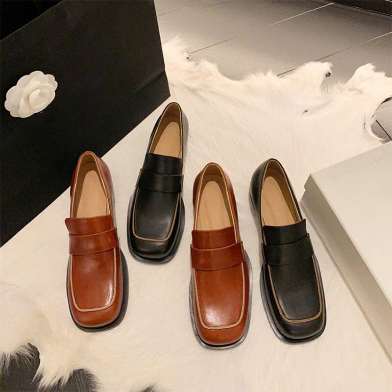 Leather Penny Loafers for Women Square Toe in Orange/Black