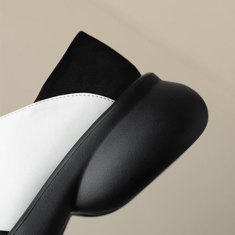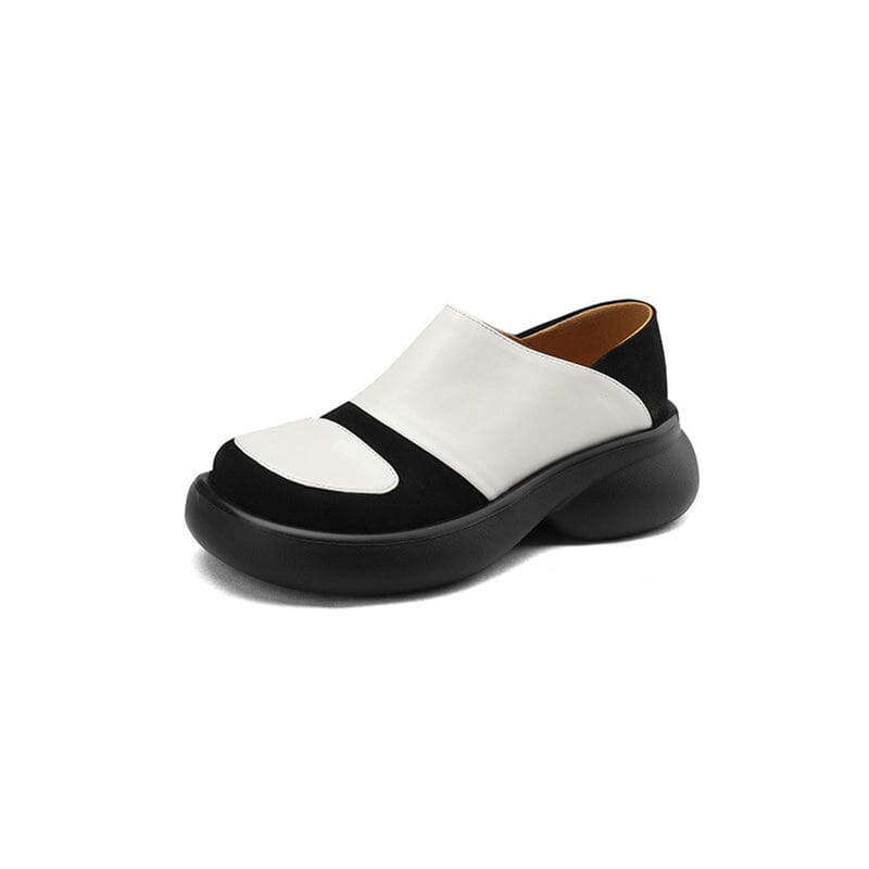Round Toe Leather Platform Loafers for Women in Brown/Black