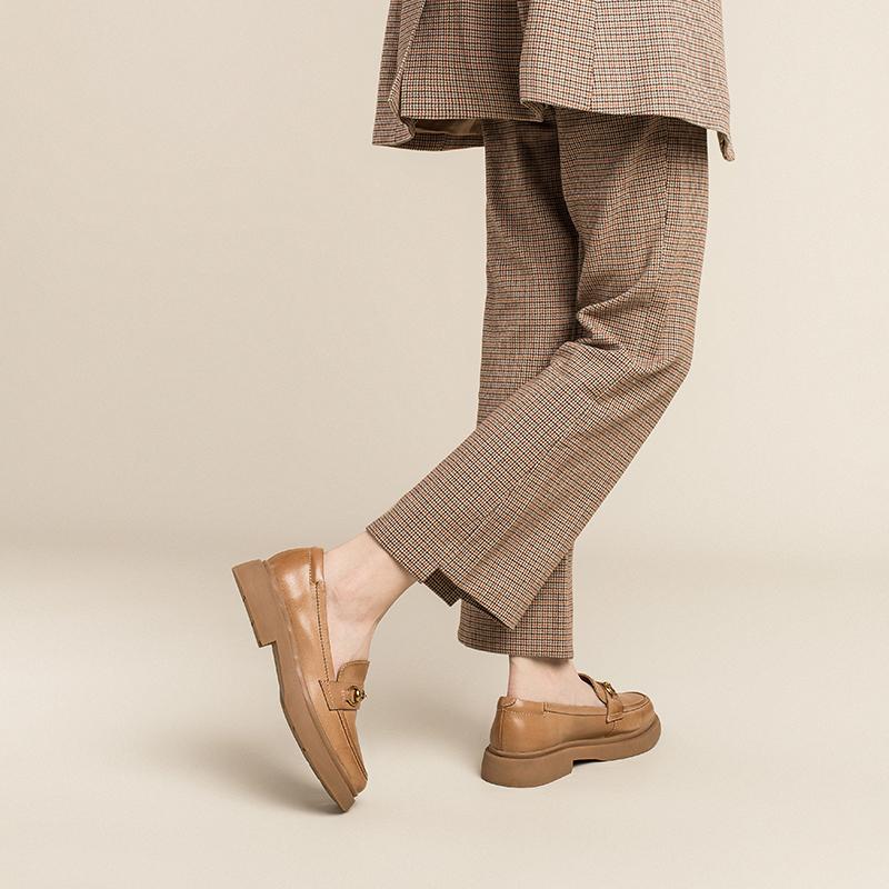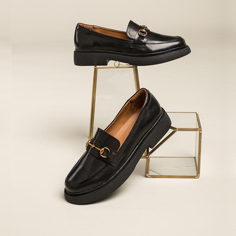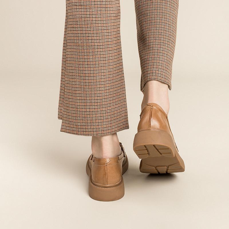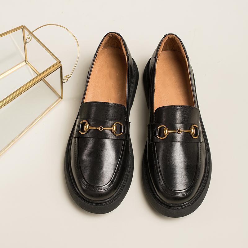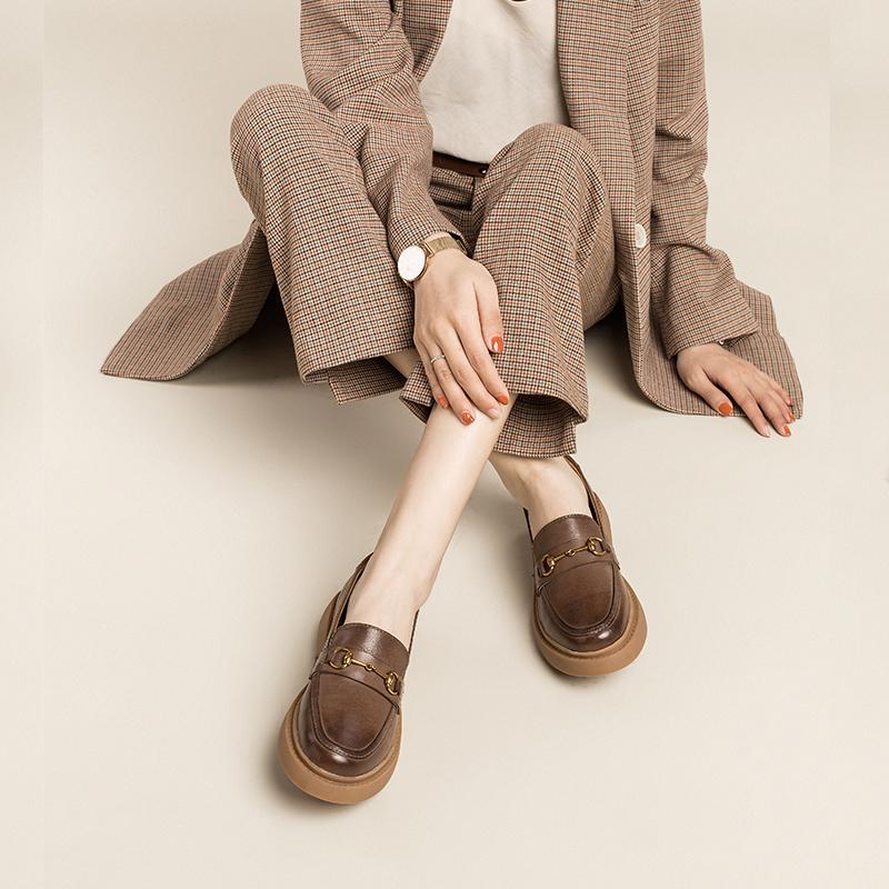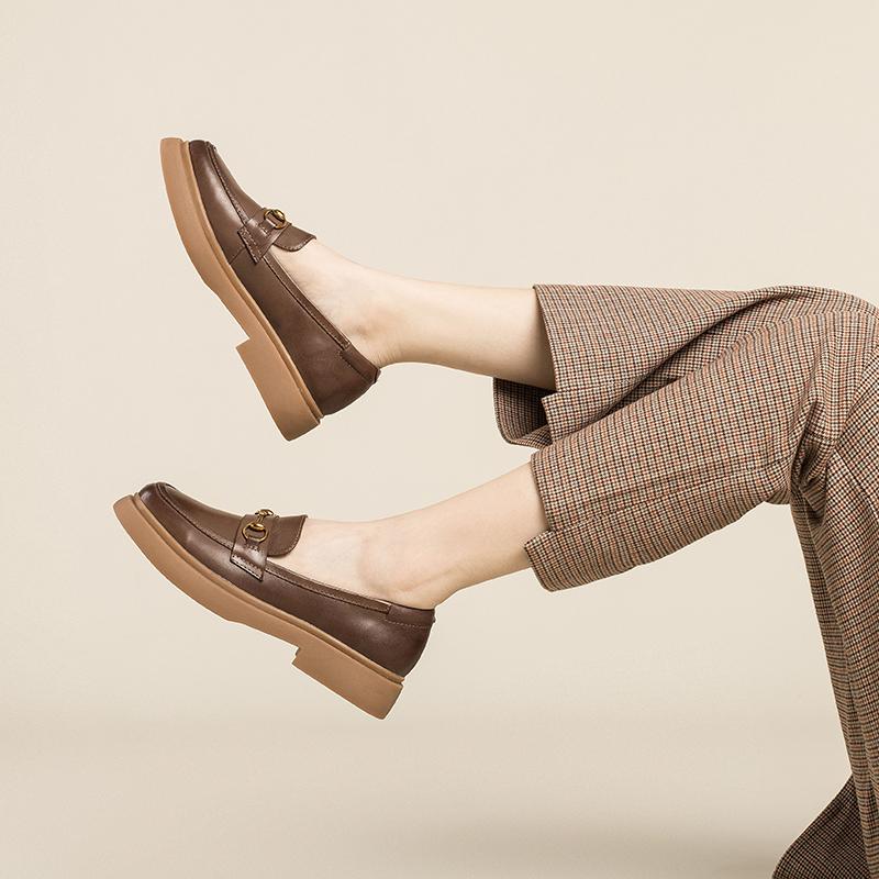 Women Handmade Sheepskin Brogue Loafers Metal button decoration Brown/Black/Coffee