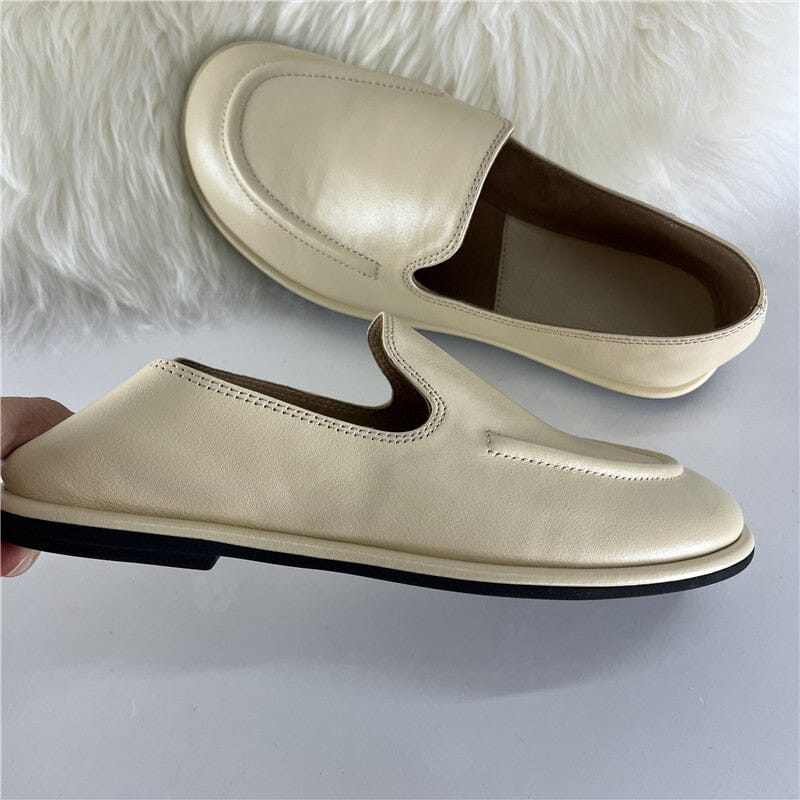 Minimalist Women Flats Slip On Leather Loafers in White/Black/Beige