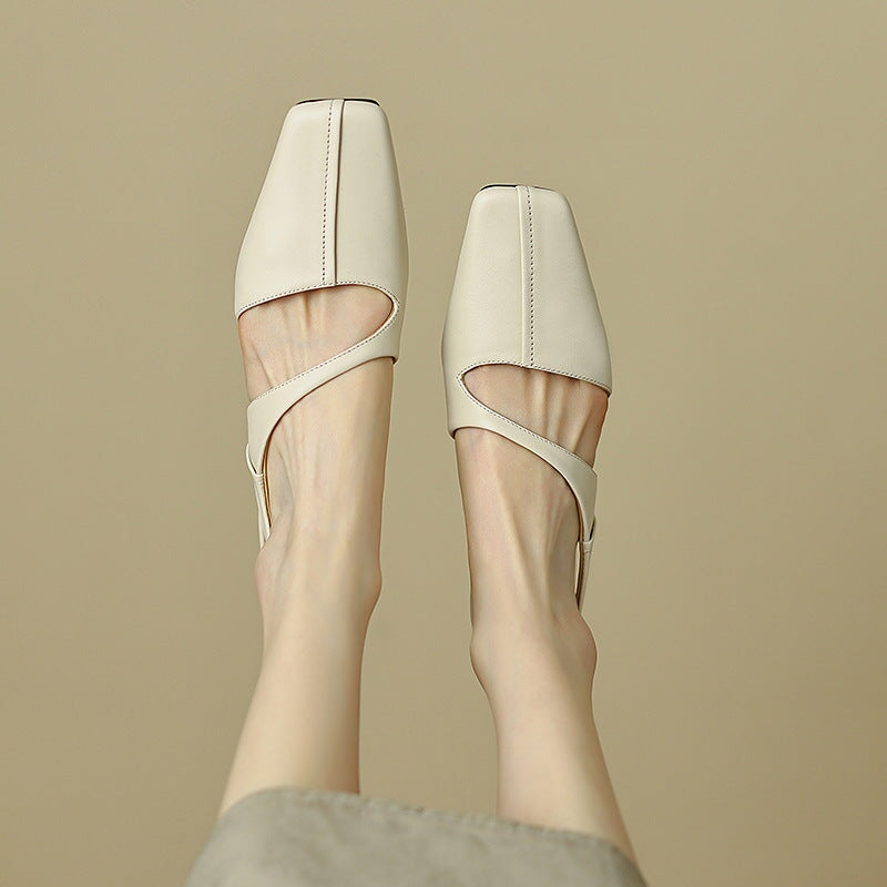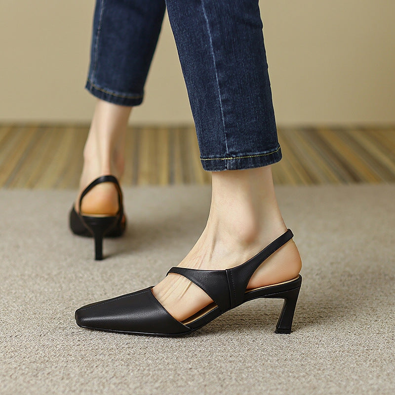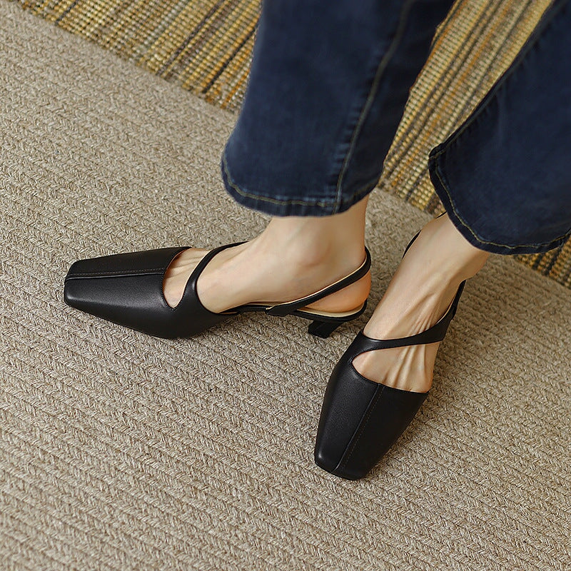 Genuine Leather Slingback Stiletto Pumps Square Toe in Black/Beige/Red
