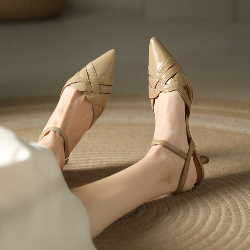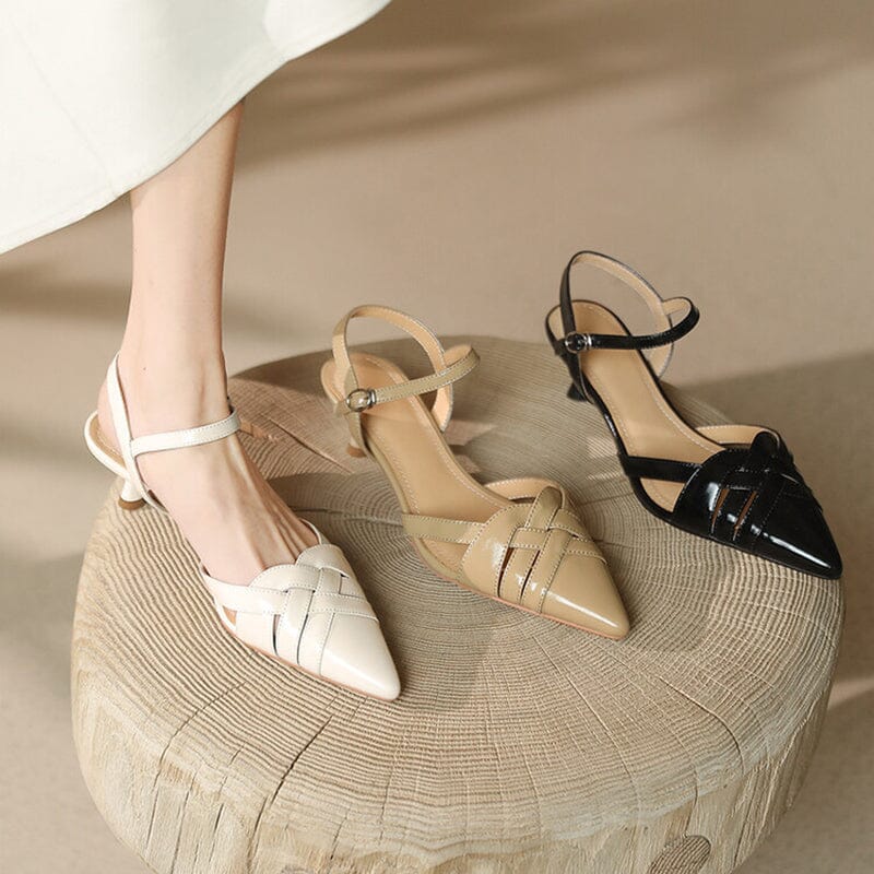 Point Toe Genuine Leather Slingback Stiletto Sandals in White/Black/Apricot