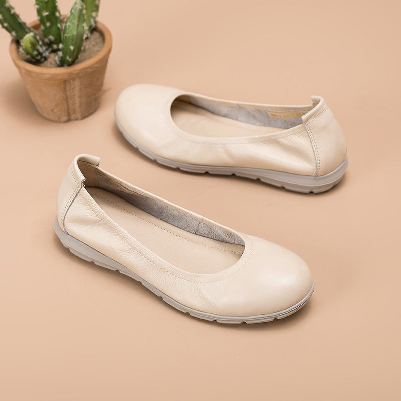 Soft Leather Glove Shoes Slip on Loafers for Women Handmade Beige/Deep Apricot/Yellow