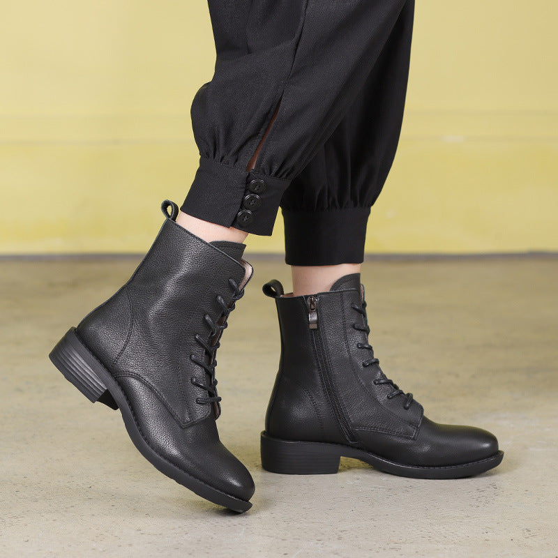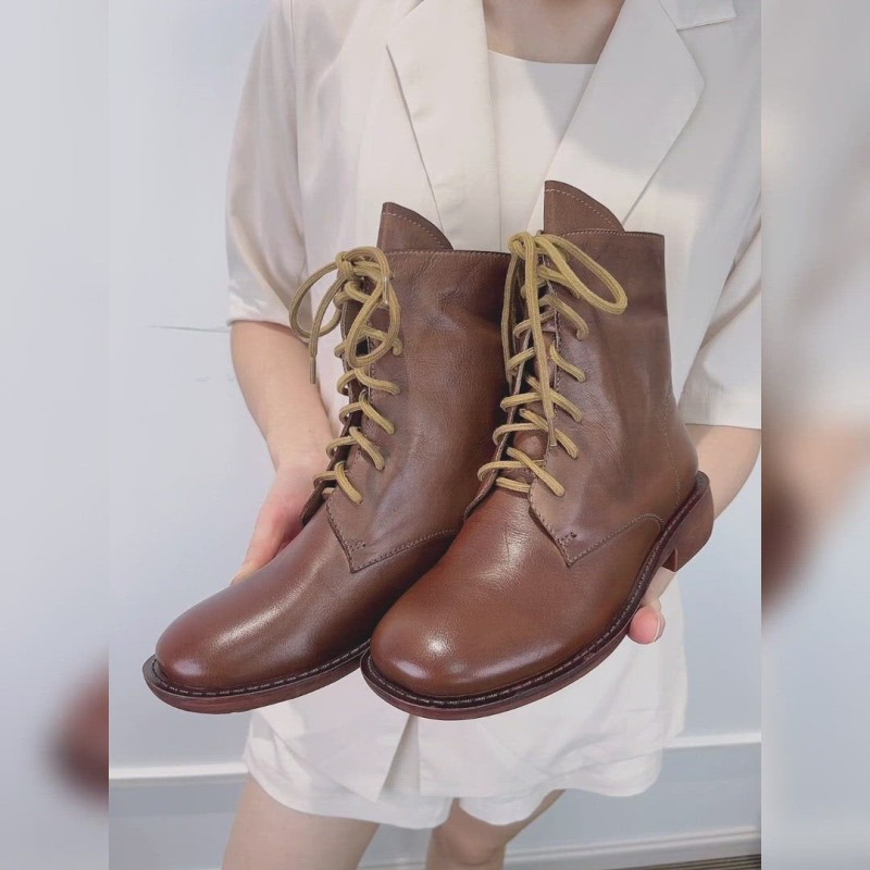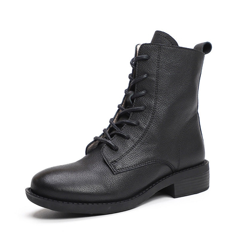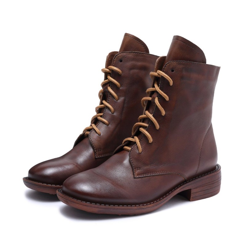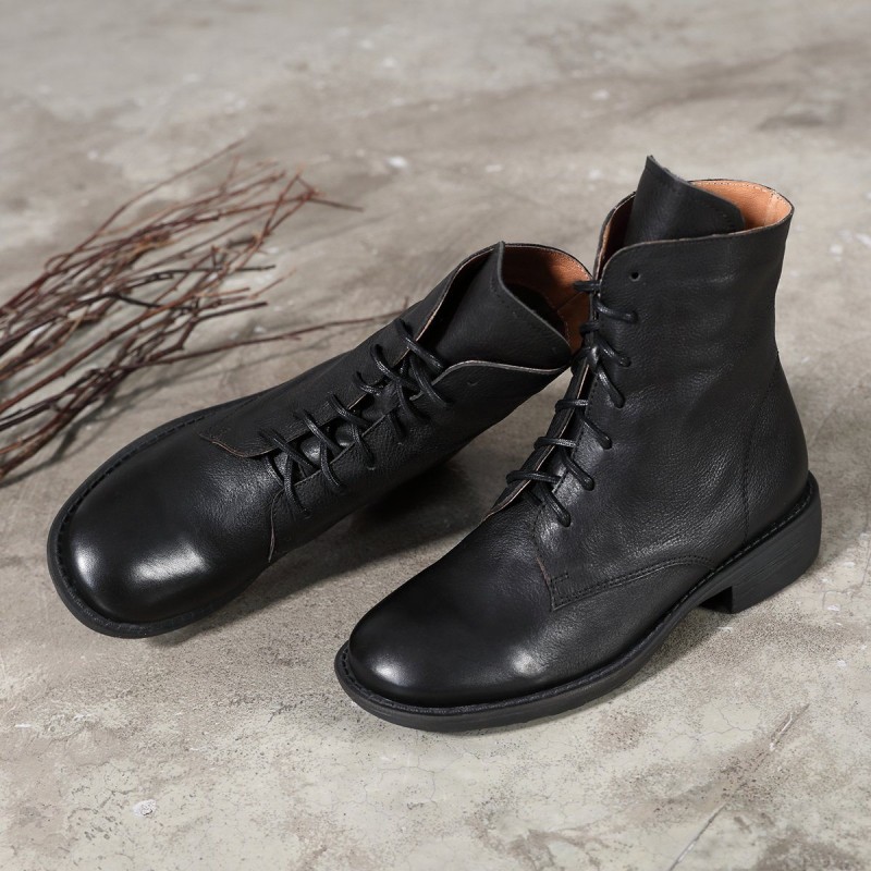Winter Boots Handmade Genuine Leather Lace-Up Combat Boots Retro Martin Boots Chunky Ankle Boots Black/Coffee