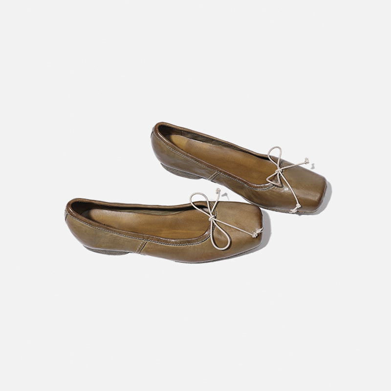Goodyear Horse Leather Bowknot Flats For Women Leather Sole in Black/Brown/Green