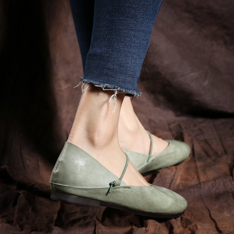 Fine Handmade Shoelace And Point Toe Design, Natural Soft Leather.