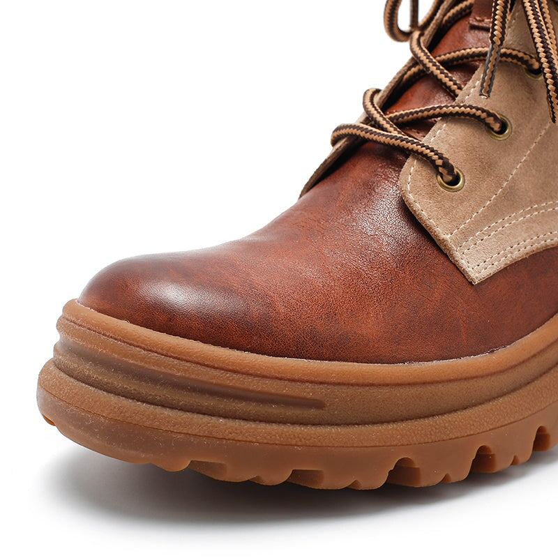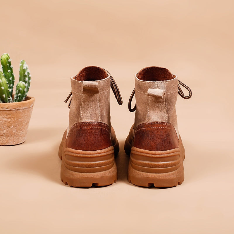 Women Handmade Leather Short Boots Retro Chunky Combat Boots