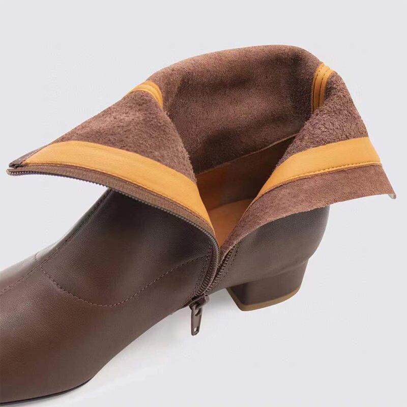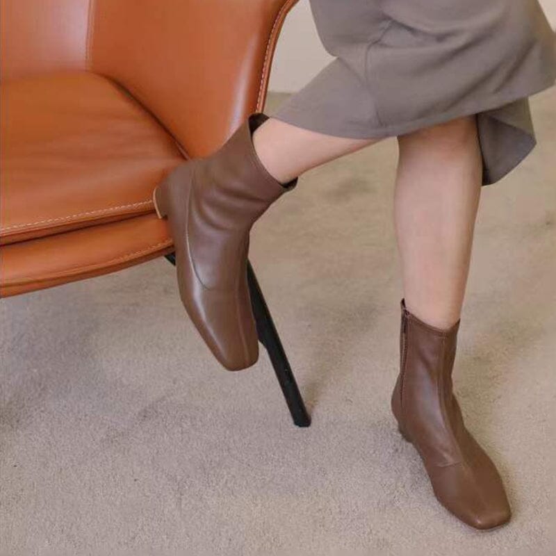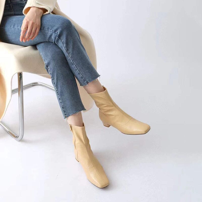 Squared Toe Leather Slimming Boots Sock Boots Yellow/Beige/Black/Coffee