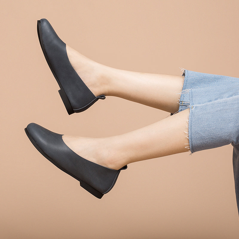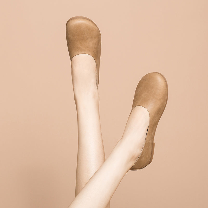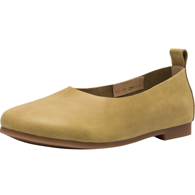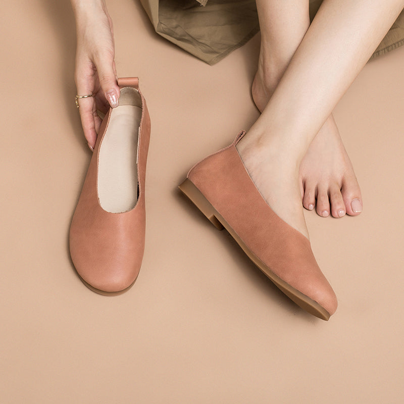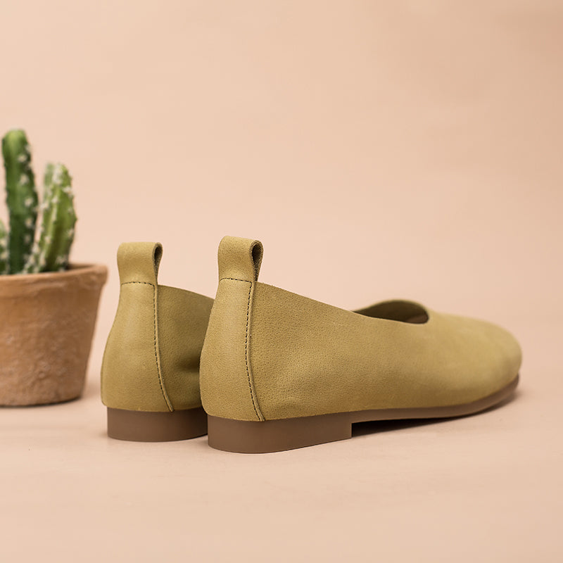 Soft Leather Flat Slip on Loafers for Women Handmade Green/Light Apricot/Brown/Blue/Pink/Coffee