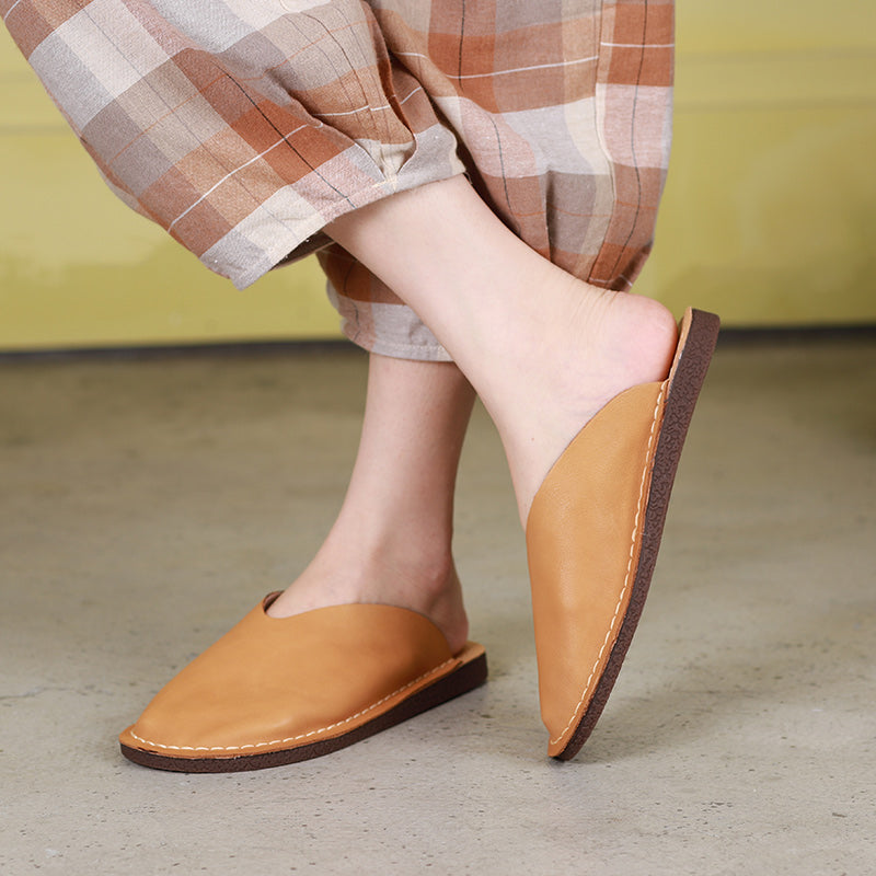 Leather Mules Summer Slippers Handmade Beige/Black/Brown/Red/Coffee