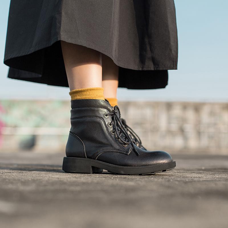 Waxing Sheepskin Leather Combat Boots Lace Up Martin Boots Black/Coffee