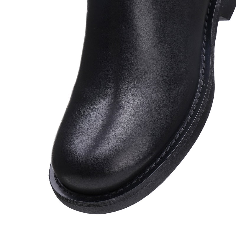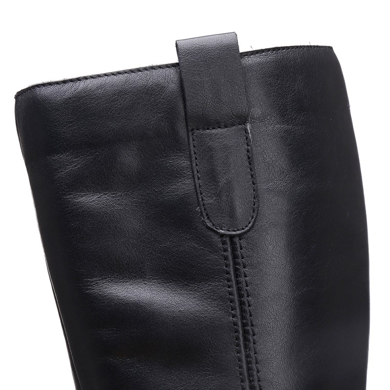 Handmade Soft Leather Knee High Boots Side Zip Riding Boots Short Plush Lining in Black/Brown