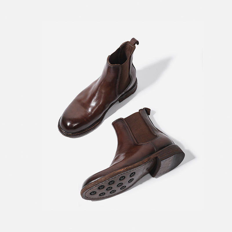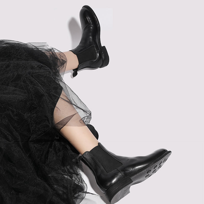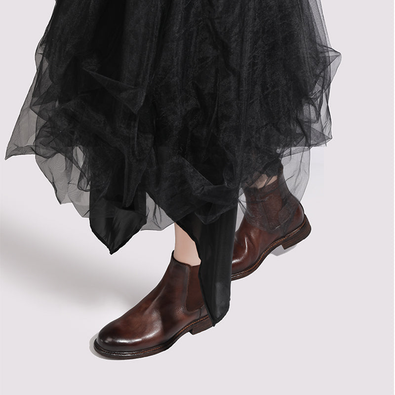 Goodyear Welt Baby Calf Full Grain Chelsea Boots For Women In Black/Brown Genuine Leather Sole