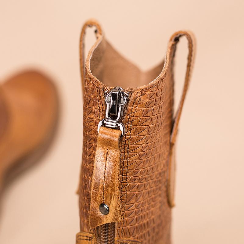 British Style Leather Western Boots Handmade Cowboy Boots Back Zip Brown/Coffee
