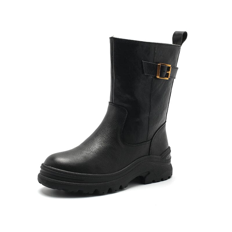 Womens Retro Leather Mid Calf Boots Shearling Lined for Cold Winter Snow Boots in Black/Brown