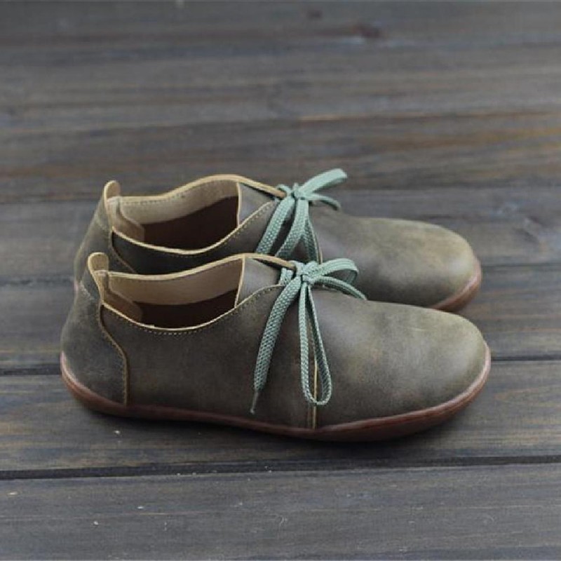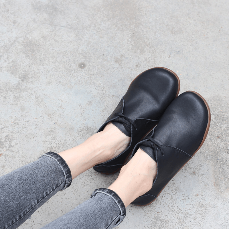 Leather Lace-Up Casual Shoes Flat Ankle Shoes